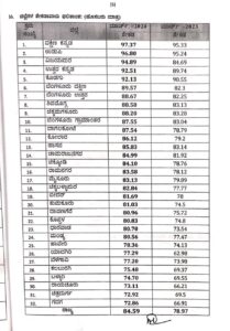 ಉಡುಪಿ – 96.80% ನೊಂದಿಗೆ ದ್ವಿತೀಯ ಸ್ಥಾನ, ವಿಜಯಪುರ– 94.89% ನೊಂದಿಗೆ ತೃತೀಯ ಸ್ಥಾನ ಪಡೆದಿದೆ. ಗದಗ ಜಿಲ್ಲೆ 72.86% ನೊಂದಿಗೆ ಕೊನೆ ಸ್ಥಾನದಲ್ಲಿದೆ.