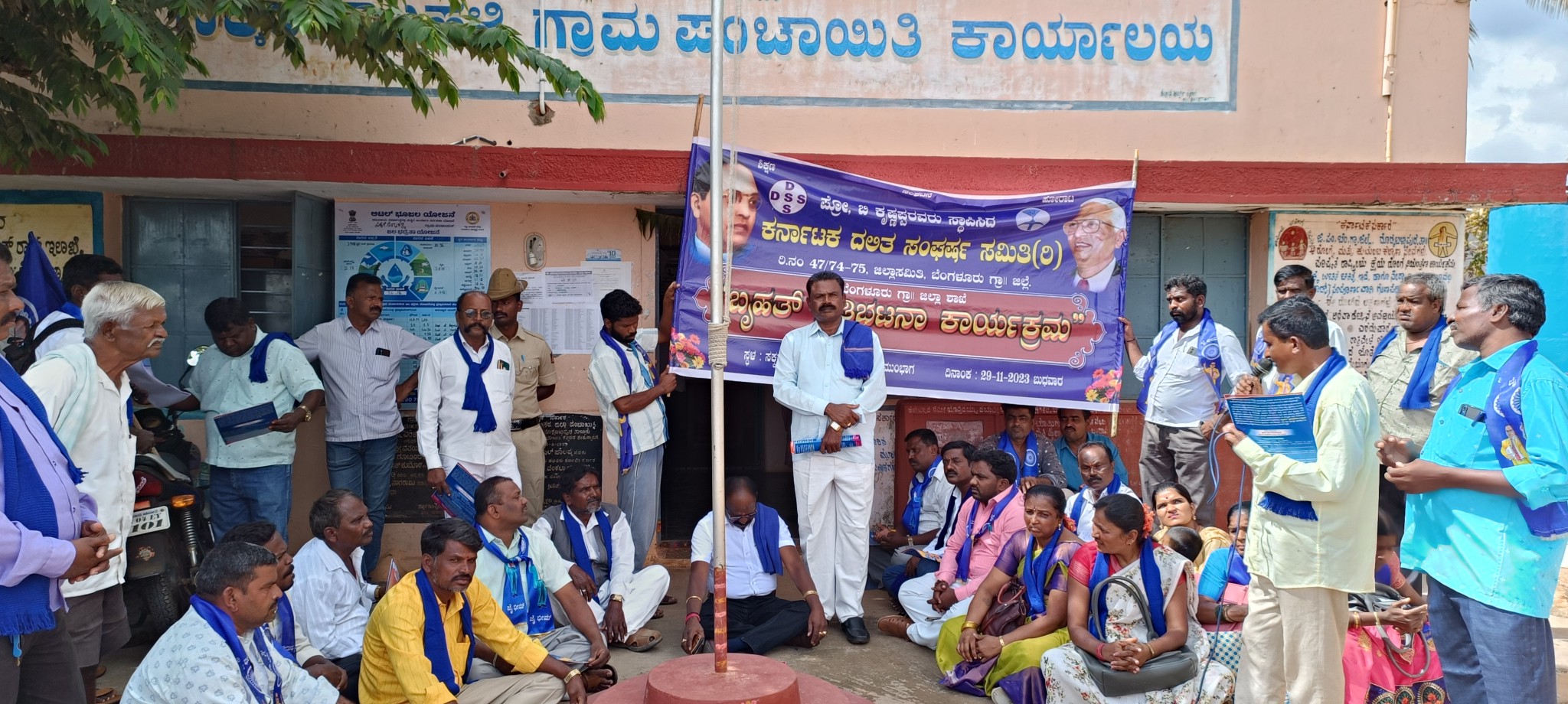 ಸಕ್ಕರೆ ಗೊಲ್ಲಹಳ್ಳಿ ಗ್ರಾಮ ಪಂಚಾಯತಿ ವ್ಯಾಪ್ತಿಗೆ ಸೇರಿದ ಬೂಚನಹಳ್ಳಿ ಗ್ರಾಮದ ಗ್ರಾಮ ಠಾಣಾ ಸ.132/116ರ ಪೈಕಿ 2 ಎಕರೆ 20 ಗುಂಟೆ ಜಾಗವನ್ನು ಅಕ್ರಮವಾಗಿ ನಕಲಿ ದಾಖಲೆ ಸೃಷ್ಟಿಸಿಕೊಂಡು ಭೂ ಕಬಳಿಕೆ ಮಾಡಲಾಗಿದೆ ಎಂದು ಆರೋಪಿಸಿ ಮಾಜಿ ಗ್ರಾಮ ಪಂಚಾಯತಿ ಅಧ್ಯಕ್ಷರ ಪತಿ ರುದ್ರಮೂರ್ತಿ ಹಾಗೂ ಬೋಗಸ್ ಇ ಖಾತಾ ಮಾಡಿಕೊಡಲಾಗಿದೆ ಎಂಬ ಆರೋಪದ ಮೇಲೆ ಗ್ರಾಮ ಪಂಚಾಯಿತಿ ಅಭಿವೃದ್ದಿ ಅಧಿಕಾರಿ ಪಿಡಿಒ ಮುನಿರಾಜು ವಿರುದ್ಧ ಕರ್ನಾಟಕ ದಲಿತ ಸಂಘರ್ಷ ಸಮಿತಿ ವತಿಯಿಂದ ಹಾಗೂ ಸ್ಥಳೀಯ ಗ್ರಾಮಸ್ಥರ ಸಹಯೋಗದೊಂದಿಗೆ ಸಕ್ಕರೆ ಗೊಲ್ಲಹಳ್ಳಿ ಗ್ರಾಮ ಪಂಚಾಯಿತಿ ಎದುರು ಬೃಹತ್ ಪ್ರತಿಭಟನೆಯನ್ನು ನಡೆಸಲಾಯಿತು.