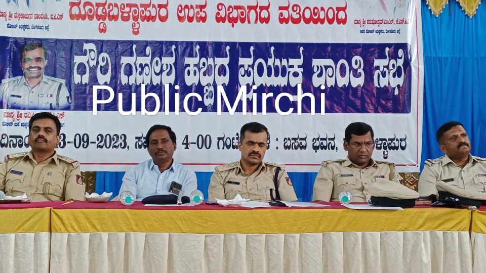 ಬೆಂಗಳೂರು ಗ್ರಾಮಾಂತರ ಜಿಲ್ಲೆ ದೊಡ್ಡಬಳ್ಳಾಪುರ ಉಪವಿಭಾಗದ ವತಿಯಿಂದ ಗೌರಿ ಗಣೇಶ ಹಬ್ಬದ ಪ್ರಯುಕ್ತ ಡಿವೈಎಸ್ ಪಿ ರವಿ.ಪಿ ಅವರ ನೇತೃತ್ವದಲ್ಲಿ ಶಾಂತಿ ಸಭೆಯನ್ನು ನಗರದ ಬಸವ ಭವನದಲ್ಲಿ ಆಯೋಜನೆ ಮಾಡಲಾಗಿತ್ತು.