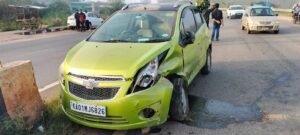ನಗರದ ಸಿದ್ದೇನಾಯಕನಹಳ್ಳಿ ಬಳಿ ಹಾದು ಹೋಗಿರುವ ಹಿಂದೂಪುರ-ಯಲಹಂಕ ರಾಜ್ಯ ಹೆದ್ದಾರಿಯ ತಿರುವಿನ ಬಳಿ ಕಾರು ಅಪಘಾತ ಸಂಭವಿಸಿದೆ. ಬೆಂಗಳೂರುನಿಂದ ಗೌರಿಬಿದನೂರು ಕಡೆಗೆ ಹೋಗುವ ವೇಳೆ ಸಿದ್ದೇನಾಯಕನಹಳ್ಳಿ ಬಳಿ ಇರುವ ರಸ್ತೆ ತಿರುವಿನಲ್ಲಿ ಕಾರಿನ ಟೈರ್ ಸ್ಫೋಟಗೊಂಡಿದೆ. ಇದರ ಪರಿಣಾಮ ಚಾಲಕನ ನಿಯಂತ್ರಣ ಕಳೆದುಕೊಂಡ ಕಾರು ಡಿವೈಡರ್ ಗೆ ಡಿಕ್ಕಿ ಹೊಡೆದಿದೆ. ಡಿಕ್ಕಿ ರಭಸಕ್ಕೆ ಕಾರಿನ ಮುಂಭಾಗ ಜಖಂಗೊಂಡಿದೆ.
