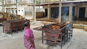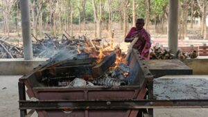 ಈಕೆ ಸುಮಾರು 7 ವರ್ಷಗಳಿಂದ ಹೆಣ ಸುಡುವ ಕಾಯಕದಲ್ಲಿ ತೊಡಗಿಕೊಂಡಿದ್ದಾರೆ. ಸಹಾಯಕನಿಂದ ಮೊದಲೆ ಶವ ಸುಡುವ ಸಿಲಿಕಾನ್ ಪೆಟ್ಟಿಗೆಯಲ್ಲಿ ಕಟ್ಟಿಗೆಯನ್ನು ಜೋಡಿಸಿ ಇಟ್ಟಿಕೊಂಡಿರುತ್ತಾರೆ ಶವ ಬಂದ ಕೂಡಲೇ ವಿಧಿ ವಿಧಾನಾಗಳನ್ನು ಪೂರೈಸಿ ಸುಡಲಾಗುತ್ತದೆ. ಒಂದು ಹೆಣ ಸಂಪೂರ್ಣವಾಗಿ ಸುಡಲು 5ರಿಂದ 6ಗಂಟೆ ಸಮಯ ತೆಗೆದುಕೊಳ್ಳುತ್ತದೆ. ಅಂತ್ಯ ಸಂಸ್ಕಾರ ಮುಗಿದ ಕೂಡಲೇ ಬೂದಿಯನ್ನು ತೆಗೆದು ಸಿಲಿಕಾನ್ ಪೆಟ್ಟಿಗೆ ಸ್ವಚ್ಚಗೊಳಿಸಿ ಮತ್ತೊಂದು ಶವದ ಸಂಸ್ಕಾರಕ್ಕೆ ಅಣಿಯಾಗುತ್ತಾರೆ, ಇಲ್ಲಿಯ ವರೆಗೂ ಸುಮಾರು 5 ಸಾವಿರಕ್ಕೂ ಹೆಚ್ಚು ಶವಗಳಿಗೆ ಮುಕ್ತಿ ಕಲ್ಪಿಸಿದ ಕೀರ್ತಿ ಲಕ್ಷ್ಮಮ್ಮ ದಂಪತಿಗೆ ಸಲ್ಲುತ್ತದೆ.