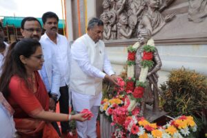 ಕೆಂಪೇಗೌಡ ಅಂತರರಾಷ್ಟ್ರೀಯ ವಿಮಾನ ನಿಲ್ದಾಣದಲ್ಲಿ ಸಚಿವರಿಂದ ಕೆಂಪೇಗೌಡರ ಪ್ರತಿಮೆಗೆ ಪುಷ್ಪನಮನ ಸಮರ್ಪಣೆ