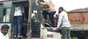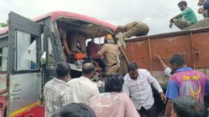 ಸತತ ಒಂದು ಗಂಟೆಯಿಂದ ಬಸ್ಸಿನಲ್ಲಿ ಸಿಲುಕಿದ ಗಾಯಾಳುಗಳನ್ನು ಹೊರತೆಗೆಯುವ ಪ್ರಯತ್ನ ನಡೆಯುತ್ತಿದೆ….