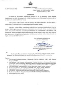 * ಎಲ್ಲ ಖಾಸಗಿ ಆಸ್ಪತ್ರೆಗಳಲ್ಲಿ ನಾಯಿ, ಹಾವು/ ಇತರೆ ಪ್ರಾಣಿಗಳ ದಾಳಿ ಪ್ರಕರಣಗಳಲ್ಲಿ ಮುಂಗಡ ಹಣಕ್ಕೆ ಒತ್ತಾಯಿಸದೆ ಚಿಕಿತ್ಸೆ ನೀಡಬೇಕು.