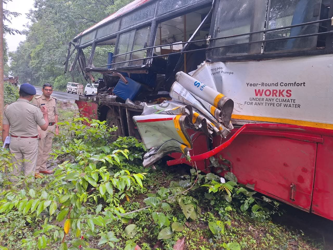 ಬಾಗಲಕೋಟ ಜಿಲ್ಲೆಯ ಅಮ್ಮಿನಗಡದಿಂದ ಧರ್ಮಸ್ಥಳಕ್ಕೆ ಪ್ರಯಾಣಿಸುತ್ತಿದ್ದ ಕೆಎಸ್ಆರ್ಟಿಸಿ ಬಸ್ ಹಿಟ್ಟಿನ ಬೈಲ ಬಳಿ ಯಾವುದೇ ರಸ್ತೆ ಸುರಕ್ಷಾ ಕ್ರಮವಿಲ್ಲದೆ, ಇಂಡಿಕೇಟರ್ ಹಾಕದೆ ರಸ್ತೆ ಬದಿಯಲ್ಲಿ ನಿಂತಿದ್ದ ಲಾರಿಗೆ ಡಿಕ್ಕಿ ಹೊಡೆದಿದೆ.