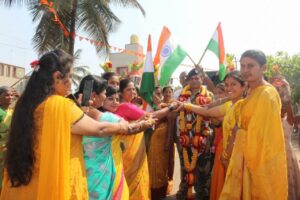 ವಿದ್ಯಾರ್ಥಿಗಳು ಬ್ಯಾಂಡ್ ಸೆಟ್ ಮೂಲಕ ಗ್ರಾಮಕ್ಕೆ ಕರೆತಂದ ನಂತರ ಗ್ರಾಮದ ಮುತ್ತೈದೆಯರು ಆರತಿ ಬೆಳಗಿ ಸ್ವಾಗತಿಸಿದರು.