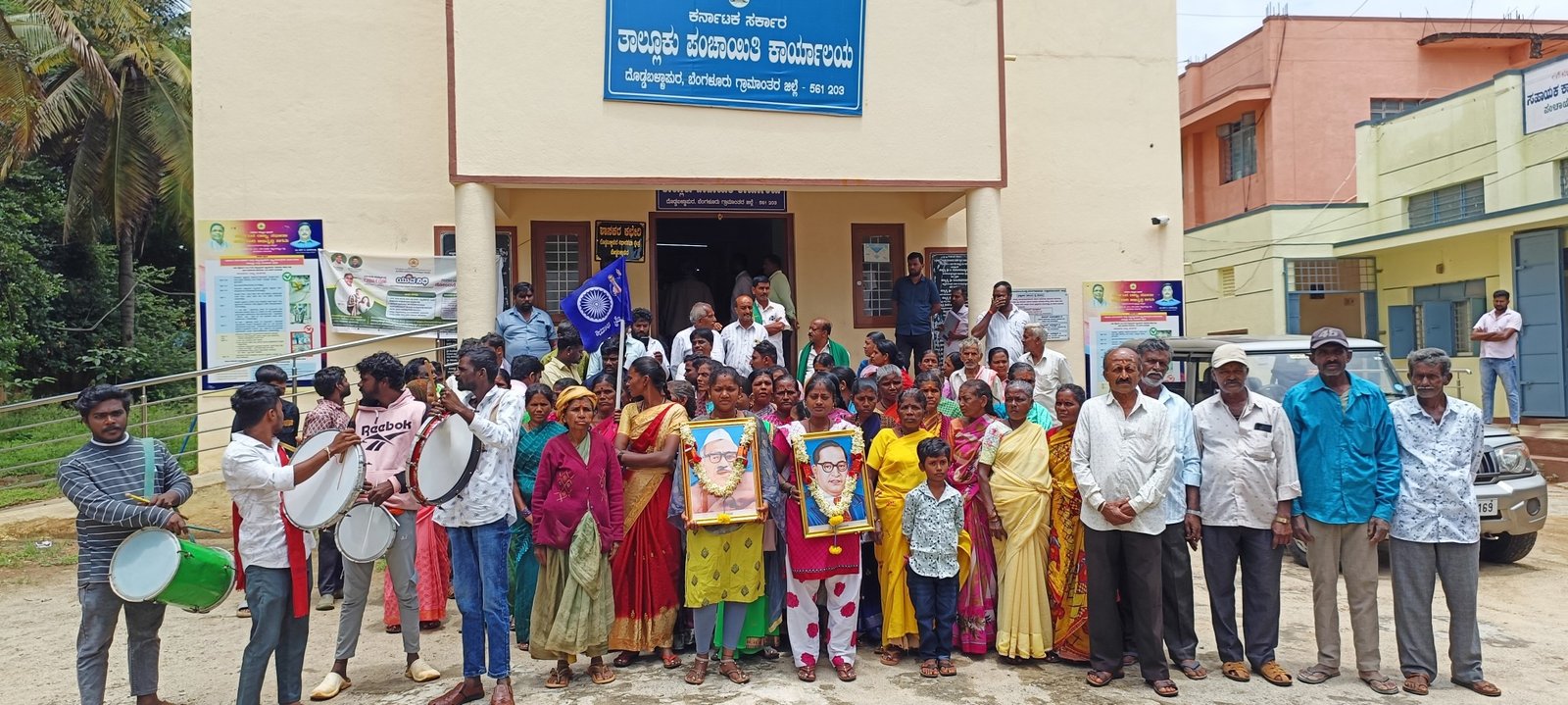 ಅರ್ಹ ಫಲಾನುಭವಿಗಳನ್ನ ಗುರುತಿಸಿ ಫಲಾನುಭವಿಗಳ ಪಟ್ಟಿ ಮಾಡುವಂತೆ ಬಚ್ಚಹಳ್ಳಿ ಮತ್ತು ಗೊಲ್ಲಹಳ್ಳಿ ತಾಂಡದ ದಲಿತರು ಇಂದು ತಾಲೂಕು ಪಂಚಾಯಿತಿ ಕಾರ್ಯಾಲಯದ ಮುಂದೆ ಪ್ರತಿಭಟನೆಯನ್ನ ನಡೆಸಿದರು, ಇದೇ ವೇಳೆ ಮಾಧ್ಯಮದೊಂದಿಗೆ ಮಾತನಾಡಿದ ದಲಿತ ಮುಖಂಡರಾದ ಬಚ್ಚಹಳ್ಳಿ ನಾಗರಾಜು, ಬಡವರಿಗೆ ನಿವೇಶನ ಕೊಡಿಸಲು 2010ರಿಂದ ನಾವು ಹೋರಾಟ ಮಾಡುತ್ತಿದ್ದೇವೆ, ಅರ್ಹ ಫಲಾನುಭವಿಗಳ ಪಟ್ಟಿಯನ್ನ ಸರ್ಕಾರಕ್ಕೆ ಸಲ್ಲಿಸಿದ್ದೇವು, ನಮ್ಮ ಹೋರಾಟದ ಫಲ ಅಶ್ರಯ ಯೋಜನೆಗಾಗಿ 5 ಎಕರೆ ಜಮೀನು ಮಂಜೂರಾಗಿದೆ.