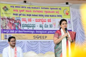ಹಬ್ಬದ ರೀತಿಯಲ್ಲಿ ಮತದಾನ ದಿನವನ್ನು ಆಚರಣೆ ಮಾಡಿ, ನೀವು ಮತದಾನ ಮಾಡಿ ನಿಮ್ಮ ಮನೆಯವರನ್ನು, ನೆರೆಹೊರೆಯವರನ್ನು ಮತದಾನ ಮಾಡಲು ಪ್ರೇರೇಪಿಸಿ ಜಿಲ್ಲೆಯಲ್ಲಿ ಅತಿ ಹೆಚ್ಚು ಮತದಾನ ಆಗಬೇಕು ಎನ್ನುವುದು ನನ್ನ ಆಶಯ ಎನ್ನುವ ಇಂಗಿತವನ್ನು ಜಿಲ್ಲಾಧಿಕಾರಿ ಹಾಗೂ ಜಿಲ್ಲಾ ಚುನಾವಣಾಧಿಕಾರಿ ಆರ್.ಲತಾ ವ್ಯಕ್ತಪಡಿಸಿದರು.