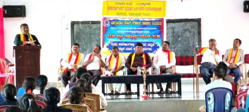 ಈ ವೇಳೆ ಪ್ರಾಂಶುಪಾಲ ಡಾ.ಆರ್.ನಾಗರಾಜು ಅಧ್ಯಕ್ಷತೆ ವಹಿಸಿದ್ದರು. ಐಕ್ಯೂಎಸಿ ಸಂಯೋಜಕ ಪ್ರೊ.ಕೆ.ಆರ್.ರವಿಕಿರಣ್, ಕನ್ನಡ ವಿಭಾಗ ಮುಖ್ಯಸ್ಥ ಡಾ.ಎಂ.ಚಿಕ್ಕಣ್ಣ ಮಾತನಾಡಿದರು. ಉಪಪ್ರಾಂಶುಪಾಲ ಪ್ರೊ.ದಕ್ಷಿಣಾಮೂರ್ತಿ, ಭಾಗ್ಯವಿಧಾತ ಕ್ರೆಡಿಟ್ ಸೌಹಾರ್ದ ಸಹಕಾರಿ ನಿಯಮಿತದ ಉಪಾಧ್ಯಕ್ಷ ದೊಡ್ಡರಂಗಪ್ಪ, ನಿವೃತ್ತ ಉಪನ್ಯಾಸಕ ಮಂಜುನಾಥಯ್ಯ, ವಿಭಾಗಗಳ ಮುಖ್ಯಸ್ಥರಾದ ಪಿ.ಚೈತ್ರ, ಸಿ.ಪಿ.ಪ್ರಕಾಶ್, ಡಾ.ತಾವರೆನಾಯ್ಕ್, ಉದ್ಯೋಗಾಧಿಕಾರಿ ಬಾಬು ಸಾಬಿ, ದೈಹಿಕ ಶಿಕ್ಷಣ ನಿರ್ದೇಶಕ ಶ್ರೀನಿವಾಸ್, ಉಪನ್ಯಾಸರಾದ ಅಭಿಷೇಕ್, ಉಷಾಶ್ರೀ ಮತ್ತಿತರರು ಉಪಸ್ಥಿತರಿದ್ದರು.