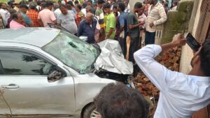 ಡಿಕ್ಕಿ ಹೊಡೆದು ಮುಂದಿದ್ದ ಕಾಂಪೌಂಡ್ ಗೆ ಕಾರು ಡಿಕ್ಕಿ ಹೊಡೆದಿದೆ. ಕಾರಿನ ಮುಂಬಾಗ ಸಂಪೂರ್ಣ ಜಖಂಗೊಂಡಿದೆ.