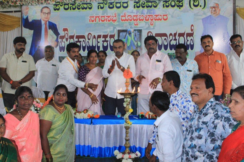 ನಗರಸಭೆ ವತಿಯಿಂದ ನಗರದ ಖಾಸಗಿ ಕಲ್ಯಾಣ ಮಂದಿರದಲ್ಲಿ ನಗರಸಭೆ ಹಾಗೂ ಪೌರಸೇವಾ ನೌಕರರ ಸೇವಾ ಸಂಘದ ವತಿಯಿಂದ ನಡೆದ ಪೌರ ಕಾರ್ಮಿಕರ ದಿನಾಚರಣೆ ಕಾರ್ಯಕ್ರಮದಲ್ಲಿ ಅವರು ಮಾತನಾಡಿದರು.