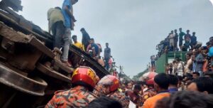 ಪ್ರಯಾಣಿಕ ಹಾಗೂ ಸರಕು ಸಾಗಣೆ ರೈಲುಗಳ ನಡುವೆ ಅಪಘಾತವಾಗಿರುವ ಘಟನೆ ಬಾಂಗ್ಲಾದೇಶದಲ್ಲಿಂದು ಸಂಜೆ ನಡೆದಿದೆ.