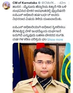 ಹಾಸನ – ಮೈಸೂರು ಹೆದ್ದಾರಿಯ ಕಿತ್ತಾನೆ ಗಡಿ ಬಳಿ ಸಂಭವಿಸಿದ ಭೀಕರ ಅಪಘಾತದಲ್ಲಿ ಪ್ರೊಬೆಷನರಿ ಐಪಿಎಸ್ ಅಧಿಕಾರಿ ಹರ್ಷಬರ್ಧನ್ ಅವರು ನಿಧನರಾದ ವಿಷಯ ತಿಳಿದು ದುಃಖವಾಯಿತು.