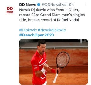 ಭಾನುವಾರ ನಡೆದ ಫ್ರೆಂಚ್ ಓಪನ್ ಫೈನಲ್ನಲ್ಲಿ ಕ್ಯಾಸ್ಪರ್ ರೂಡ್ ಅವರನ್ನು ಸೋಲಿಸಿದ ನಂತರ ಅವರು 22 ಬಾರಿ ಗ್ರ್ಯಾಂಡ್ ಸ್ಲಾಮ್ ಚಾಂಪಿಯನ್ ರಾಫೆಲ್ ನಡಾಲ್ ಅವರನ್ನು ಹಿಂದಿಕ್ಕಿದ್ದಾರೆ.