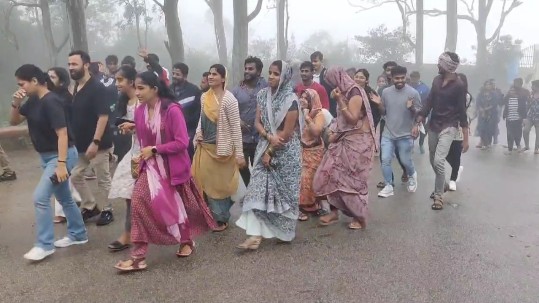 ಇನ್ನು ಇಂದು ವೀಕೆಂಡ್ ಆಗಿದ್ದ ಹಿನ್ನೆಲೆ ಸಾವಿರಾರು ಸಂಖ್ಯೆಯಲ್ಲಿ ಪ್ರವಾಸಿಗರು ಆಗಮಿಸಿದ್ದು, ನಂದಿಗಿರಿಧಾಮದ ಪಾರ್ಕಿಂಗ್ ಫುಲ್ ಆಗಿತ್ತು. ಸ್ನೇಹಿತರು, ಪ್ರೇಮಿಗಳು, ಕುಟುಂಬಸ್ಥರು ಬೆಟ್ಟದಲ್ಲಿ ಪ್ರಕೃತಿ ಸೌಂದರ್ಯಕ್ಕೆ ಮನಸೋತರು. ಎಲ್ಲಿ ನೋಡಿದರೂ ಸೆಲ್ಪಿ ತೆಗೆದುಕೊಳ್ಳುವುದು ಸಾಮಾನ್ಯವಾಗಿತ್ತು. ಭಾರೀ ಮಳೆಯಿಂದಾಗಿ ಉತ್ತರ ಕರ್ನಾಟಕ ಭಾಗದಲ್ಲಿ ಪ್ರವಾಸಿ ತಾಣಗಳಲ್ಲಿ ನಿರ್ಬಂಧ ಹೇರಿದ ಹಿನ್ನೆಲೆ ನಂದಿಗಿರಿಧಾಮದಲ್ಲಿ ಜನಸಂದಣಿ ಹೆಚ್ಚಾಗಿತ್ತು. ಜಡಿ ಮಳೆಗೆ ಮಳೆಯ ಹನಿಗಳು ಬೀಳುತ್ತಿದ್ದಂತೆ ನಂದಿಗಿರಿಧಾಮ ಕರಾವಳಿ ಭಾಗದ ಸೌಂದರ್ಯವೂ ನಾಚುವಂತೆ ಇತ್ತು. ಟಿಪ್ಪು ಡ್ರಾಪ್, ಸೆಲ್ಫಿ ಗ್ಯಾಲರಿ ಬಳಿ ಎಲ್ಲಿ ನೋಡಿದರೂ ಜನವೋ ಜನ. ಮೊದಲ ಬಾರಿ ಬಂದ ಪ್ರವಾಸಿಗರು ಇಲ್ಲಿನ ಪ್ರಕೃತಿ ಸೌಂದರ್ಯಕ್ಕೆ ಫುಲ್ ಫಿದಾ ಆಗಿ ಒಂದು ಕ್ಷಣ ಮೈ ಮರೆತರು.
