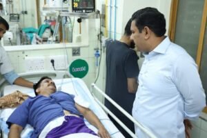 ಗಂಭೀರ ಹಲ್ಲೆಗೊಳಗಾಗಿ ಖಾಸಗಿ ಆಸ್ಪತ್ರೆಯಲ್ಲಿ ಚಿಕಿತ್ಸೆ ಪಡೆಯುತ್ತಿರುವ ಬಿಜೆಪಿ ಎಸ್ಸಿ ಮೋರ್ಚಾ ಮುಖಂಡ ಪೃಥ್ವಿ ಸಿಂಗ್ ಅವರನ್ನು ಕಂಡು ಆರೋಗ್ಯ ವಿಚಾರಿಸಿದ ಬಿಜೆಪಿ ರಾಜ್ಯಾಧ್ಯಕ್ಷ ಬಿ.ವೈ.ವಿಜಯೇಂದ್ರ.