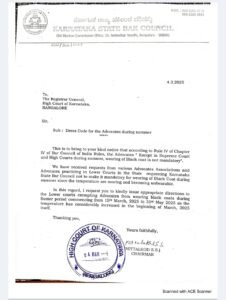 ರಾಜ್ಯದಲ್ಲಿ ಉಷ್ಣಾಂಶ ಹೆಚ್ಚಿರುವುದರಿಂದ, ಬಿಸಿಲಿನ ಬೇಗೆಯಿಂದ ತತ್ತರಿಸಿರುವ ಕಾರಣದಿಂದ ರಾಜ್ಯ ಉಚ್ಚ ನ್ಯಾಯಾಲಯವು ಮಾರ್ಚ್ 15ರಿಂದ ಮೇ 31ರವರೆಗೆ ನ್ಯಾಯಾಲಯದ ಕಲಾಪಗಳಲ್ಲಿ ವಕೀಲರು ಕಪ್ಪು ಕೋಟು ಧರಿಸಲು ವಿನಾಯತಿ ನೀಡಿದೆ.