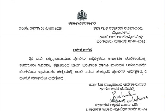 ಅಪರ ಪೊಲೀಸ್ ಅಧೀಕ್ಷಕ-2 ಆಗಿದ್ದ ನಾಗರಾಜ್ ಕೆ.ಎಸ್ ಅವರು ಬೆಂಗಳೂರು ಗ್ರಾಮಾಂತರ ಜಿಲ್ಲೆಯಲ್ಲಿ ಸುದೀರ್ಘ ಸೇವೆ ಸಲ್ಲಿಸಿ, ಇತ್ತಿಚೆಗೆ ಬಿ.ಡಿ.ಎ (BDA) ಗೆ ವರ್ಗಾವಣೆಗೊಂಡಿದ್ದರು. ಅವರ ಸ್ಥಾನಕ್ಕೆ ಎ.ವಿ ಲಕ್ಷ್ಮಿನಾರಾಯಣ ಅವರನ್ನು ನೇಮಕ ಮಾಡಲಾಗಿದೆ…