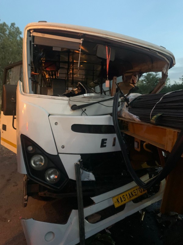 ದೊಡ್ಡಬಳ್ಳಾಪುರ ತಾಲೂಕಿನ ಮಾಕಳಿ ರೈಲ್ವೆ ನಿಲ್ದಾಣ ಮೂಲಕ ಹಾದುಹೋಗಿರುವ ಹಿಂದೂಪುರ- ಯಲಹಂಕ ಹೆದ್ದಾರಿಯಲ್ಲಿ ಸುಮಾರು ಎರಡು ದಿನಗಳಿಂದ ಕೆಟ್ಟು ನಿಂತಿದ್ದ ಕಂಬಿ ಹೊತ್ತ ಲಾರಿಗೆ ಖಾಸಗಿ ಕಂಪನಿ ಕಾರ್ಮಿಕರನ್ನು ಹೊತ್ತು ಸಾಗುತ್ತಿದ್ದ ಬಸ್ ಹಿಂಬದಿಯಿಂದ ಡಿಕ್ಕಿ ಹೊಡೆದಿರುವ ಘಟನೆ ಇಂದು ಮುಂಜಾನೆ ಸುಮಾರು 5 ಗಂಟೆಯಲ್ಲಿ ನಡೆದಿದೆ.