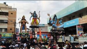 ಭಾನುವಾರ ಸಂಜೆ ಬಹತ್ ಶೋಭಾಯಾತ್ರೆ ನಗರದ ಪ್ರಮುಖ ರಸ್ತೆಗಳಲ್ಲಿ ಸಾಗಿತು. ಭಾರತ ಮಾತೆ, ಶ್ರೀರಾಮ, ಹನುಮ, ಶಿವ, ಭುವನೇಶ್ವರಿ, ಡಾ.ಬಿ.ಆರ್.ಅಂಬೇಡ್ಕರ್, ಶಿವಾಜಿ ಪ್ರತಿಮೆಗಳೊಂದಿಗೆ ವಿವಿಧ ಕಲಾತಂಡಗಳು ಶೋಭಾಯಾತ್ರೆಯ ಮೆರವಣಿಗೆಯಲ್ಲಿ ಭಾಗವಹಿಸಿದ್ದವು.