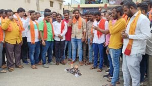 2023ರ ರಾಜ್ಯ ವಿಧಾನಸಭಾ ಚುನಾವಣೆಯಲ್ಲಿ ತಾವು ಅಧಿಕಾರಕ್ಕೆ ಬಂದರೆ ಭಜರಂಗದಳವನ್ನು ನಿಷೇಧಿಸಲಾಗುವುದು ಎಂಬ ಕಾಂಗ್ರೆಸ್ ಚುನಾವಣಾ ಪ್ರಣಾಳಿಕೆಯಲ್ಲಿನ ಭರವಸೆಯನ್ನು ಖಂಡಿಸಿದ ಭಜರಂಗ ದಳದ ಮುಖಂಡರು ನಗರದ ತಾಲೂಕು ಕಚೇರಿ ವೃತ್ತದಲ್ಲಿ ಪ್ರತಿಭಟನೆ ನಡೆಸಿ, ಕಾಂಗ್ರೆಸ್ ಪ್ರಣಾಳಿಕೆಯ ಪ್ರತಿಯನ್ನು ಸುಟ್ಟು ಆಕ್ರೋಶ ವ್ಯಕ್ತಪಡಿಸಿದ ನಂತರ ಅವರು ಮಾತನಾಡಿದರು.