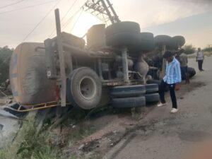 ಸಿಮೆಂಟ್ ಬಲ್ಕರ್ ಲಾರಿ ಚಾಲಕ ಪ್ರಾಣಾಪಾಯದಿಂದ ಪಾರಾಗಿದ್ದು, ಲಾರಿ ಸಂಪೂರ್ಣ ಜಖಂಗೊಂಡಿದೆ.
