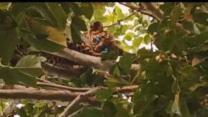 ಚಿರತೆ ಮರಿಯೊಂದು ಮರದಲ್ಲಿ ಪ್ರತ್ಯಕ್ಷಗೊಂಡಿದ್ದು, ಸತತವಾಗಿ ಒಂದು ಗಂಟೆಗಳ ಕಾಲ ಹೊಂಗೆ ಮರದ ಕೊಂಬೆಯಲ್ಲೇ ಕುಳಿತಿದೆ.