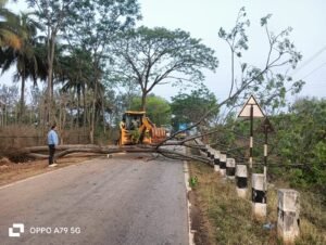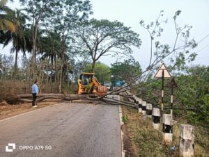 ಇಂದು ಬೆಳಗ್ಗೆ ಗ್ರಾಮ ಪಂಚಾಯಿತಿ ಸದಸ್ಯ ಹಾಗೂ ಸಂಬಂಧಪಟ್ಟವರು ಸ್ಥಳಕ್ಕೆ ಆಗಮಿಸಿ ರಸ್ತೆಗೆ ಅಡ್ಡಲಾಗಿ ಬಿದ್ದಿದ್ದ ಮರವನ್ನು ಜೆಸಿಬಿ ಮೂಲಕ ತೆರವುಗೊಳಿಸಿ ಸುಗಮ ಸಂಚಾರಕ್ಕೆ ಅನುವು ಮಾಡಿಕೊಡಲಾಯಿತು.