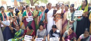 ಗ್ಯಾರೆಂಟಿ ಯೋಜನೆಯಿಂದ ಹಳ್ಳಿ ಹೆಣ್ಣುಮಕ್ಕಳು ದಾರಿ ತಪ್ಪುತ್ತಿದ್ದಾರೆ ಎಂದು ಮಾಜಿ ಮುಖ್ಯಮಂತ್ರಿ ಹೆಚ್.ಡಿ. ಕುಮಾರಸ್ವಾಮಿ ಹೇಳಿಕೆ ಖಂಡಿಸಿ ನಗರದ ಸಿದ್ದಲಿಂಗಯ್ಯ ವೃತ್ತದಲ್ಲಿಂದು ಕಾಂಗ್ರೆಸ್ ಜಿಲ್ಲಾ ಮಹಿಳಾ ಘಟಕದ ವತಿಯಿಂದ ಪ್ರತಿಭಟನೆ ನಡೆಸಲಾಯಿತು.