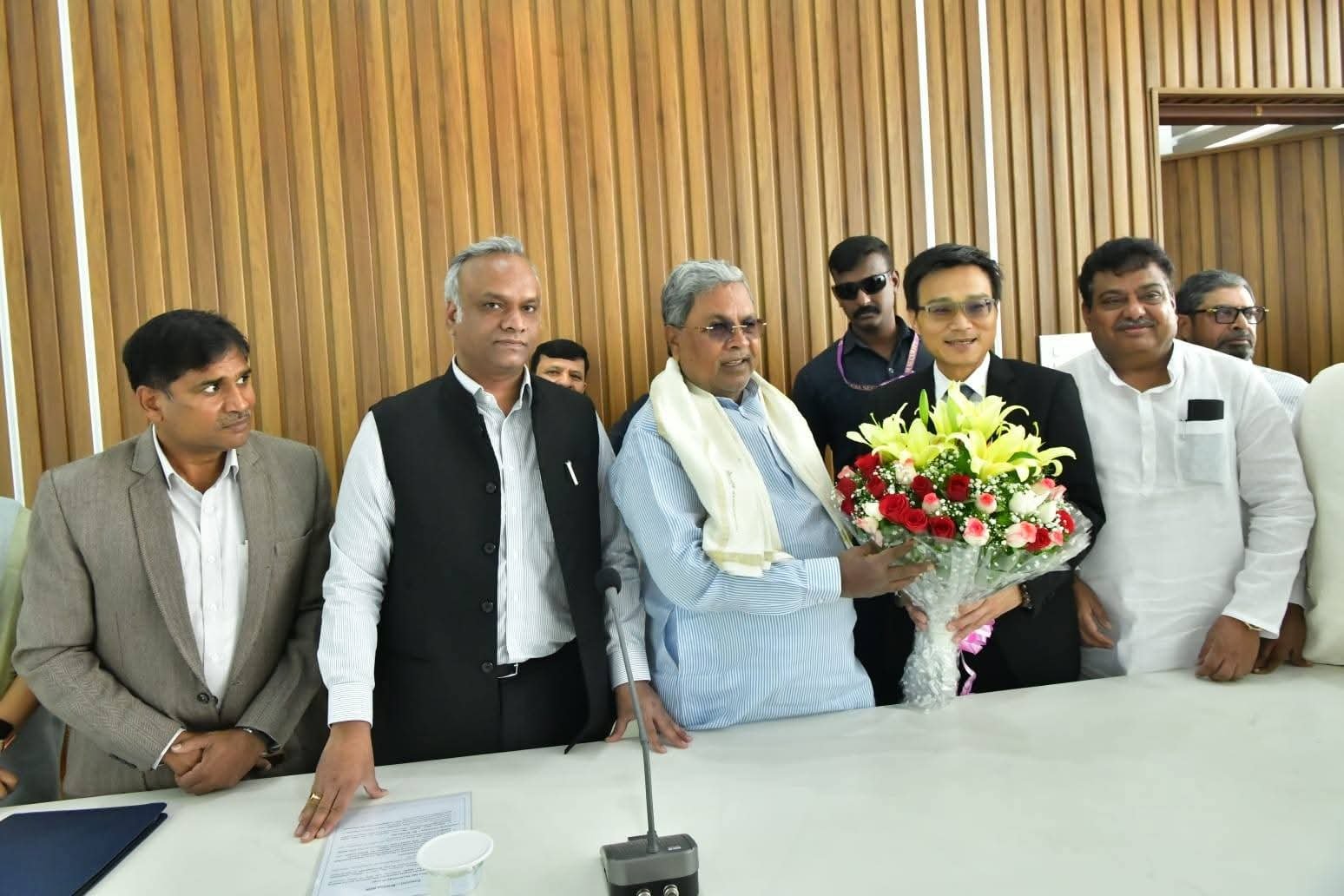 ಫಾಕ್ಸ್ಕಾನ್ ಕಂಪನಿಯ ಭಾರತದ ಮುಖ್ಯಸ್ಥ ರಾಬರ್ಟ್ ವೂ ಅವರು ಮುಖ್ಯಮಂತ್ರಿ ಸಿದ್ದರಾಮಯ್ಯ ಅವರನ್ನು ಇಂದು ಭೇಟಿಯಾಗಿ ಮಾತುಕತೆ ನಡೆಸಿದರು.