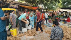 ಬಟ್ಟೆ ಅಂಗಡಿಗಳು, ಹೂವಿನ ಮಾರುಕಟ್ಟೆ, ಸಿಹಿ ತಿನಿಸುಗಳ ಮಾರಾಟ ಅಂಗಡಿ ಮತ್ತು ತರಕಾರಿ ಅಂಗಡಿಗಳಲ್ಲಿ ಜನದಟ್ಟಣೆ ಕಂಡುಬಂದಿತು. ಗ್ರಾಮೀಣ ಭಾಗದ ಜನರು ಹಬ್ಬದ ಪದಾರ್ಥಗಳ ಖರೀದಿಗೆ ಹೆಚ್ಚಿನ ಸಂಖ್ಯೆಯಲ್ಲಿ ಆಗಮಿಸಿದ್ದರು.
