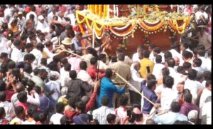 ರಥ ಎಳೆಯುವ ಉತ್ಸಾಹದಲ್ಲಿ ಭಕ್ತರು ಕೆಳಕ್ಕೆ ಬಿದ್ದರು. ಅಲ್ಲಿಯೇ ಜನರನ್ನು ನಿಯಂತ್ರಿಸುತ್ತಿದ್ದ ಡಿವೈಎಸ್ಪಿ ರವಿ ಅವರು ರಥ ನಿಲ್ಲಿಸುವಂತೆ ಕೂಗಿಕೊಂಡರು. ಆದರೆ, ಯಾರೂ ಕಿವಿಗೊಡಲಿಲ್ಲ. ಆಗ ಪತ್ರಕರ್ತ ಶಿವರಾಜ ನೇಸರ ಅವರು ಮಹಿಳೆ ಸೇರಿದಂತೆ 7 ಜನರನ್ನು ಚಕ್ರ ಸಾಗುವ ಹಾದಿಯಿಂದ ಹೊರದೂಡಿ ಅಪಾಯದಿಂದ ಪಾರು ಮಾಡಿ ಮಾನವೀಯತೆ ಮೆರೆದಿದ್ದಾರೆ. ಆ ಬಳಿಕ ಚಕ್ರ ಮುಂದಕ್ಕೆ ಸಾಗಿತು. ಒಟ್ಟಾರೆ ಅಧಿಕಾರಿ ಹಾಗೂ ಪತ್ರಕರ್ತರ ಸಮಯಪ್ರಜ್ಞೆಯಿಂದ ಕೂದಲೆಳೆ ಅಂತರದಲ್ಲಿ ಅವಘಡವೊಂದು ತಪ್ಪಿದೆ.
