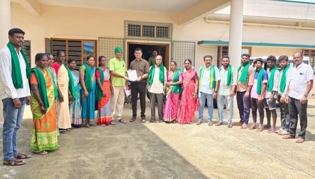 ಕೋಲಾರ :ಪ್ರತಿ ಪಂಚಾಯಿತಿಗೊಂದು ರಾಗಿ ಹಾಗೂ ಭತ್ತ ಕಟಾವು ಯಂತ್ರೋಪಕರಣಗಳನ್ನು ಕೃಷಿ ಇಲಾಖೆಯಿಂದ ಉಚಿತವಗಿ ನೀಡುವ ಜೊತೆ ಖಾಸಗಿ ಯಂತ್ರಗಳ ದುಬಾರಿ ಬೆಲೆ ನಿಯಂತ್ರಣಕ್ಕೆ ಕಡಿವಾಣ ಹಾಕಿ ರೈತರ ರಕ್ಷಣೆ ಮಾಡಬೇಕು ಎಂದು ಒತ್ತಾಯಿಸಿ ರೈತ ಸಂಘದಿಂದ ಕೃಷಿ ಅಧಿಕಾರಿ ಮಹೇಶ್ ಅವರಿಗೆ ಮನವಿ ನೀಡಿ ಒತ್ತಾಯಿಸಲಾಯಿತು.