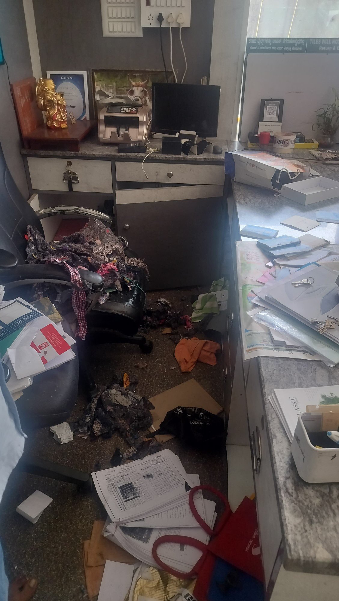 ಅಂಗಡಿಗಳ ಮೇಲ್ಛಾವಣಿಯ ಶೀಟ್ ಗಳನ್ನು ಕೊರೆದು ಒಳ ಹೋಗಿ ಹಣ, ವಸ್ತುಗಳನ್ನು ಎಗರಿಸಲು ಕಳ್ಳರು ಯತ್ನಿಸಿದ್ದಾರೆ.