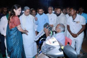 ಕಾರ್ಮಿಕ ಸಚಿವ ಸಂತೋಷ್ ಲಾಡ್ ಅವರದ್ದು ಕಷ್ಟಕ್ಕೆ, ಬಡತನಕ್ಕೆ ಮಿಡಿಯುವ ಹೃದಯ. ಈ ಕಾರಣಕ್ಕೇ ಇವರಿಗೆ ಕಾರ್ಮಿಕ ಇಲಾಖೆ ಸಚಿವರನ್ನಾಗಿ ಮಾಡಿದ್ದೇನೆ. ಸಂತೋಷ್ ಲಾಡ್ ಅವರ ಕಾಳಜಿಯಿಂದ CSR ನಿಧಿ ಮತ್ತು ಕಾರ್ಮಿಕ ಇಲಾಖೆ ಮೂಲಕ 525 ವಿಶೇಷ ಚೇತನರಿಗೆ ತ್ರಿಚಕ್ರ ವಾಹನಗಳನ್ನು ವಿತರಿಸಿದ್ದಾರೆ. ಇದು ನನಗೆ ಬಹಳ ಸಂತೋಷ ತಂದಿದೆ ಎಂದು ಹೇಳಿದರು.
