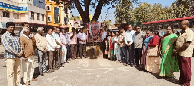 ಕೋಲಾರ: ಕರ್ನಾಟಕ ಪ್ರಾಂತ ರೈತ ಸಂಘ(ಕೆ.ಪಿ.ಆರ್.ಎಸ್) ರಾಜ್ಯ ಅಧ್ಯಕ್ಷ ಹಾಗೂ ಸಿಪಿಐಎಂ ಪಕ್ಷದ ರಾಜ್ಯ ಕಾರ್ಯದರ್ಶಿ ಮಂಡಳಿ ಸದಸ್ಯ ಜಿ.ಸಿ ಬಯ್ಯಾರೆಡ್ಡಿ ನಿಧನದ ಹಿನ್ನಲೆಯಲ್ಲಿ ಶನಿವಾರ ನಗರದ ಮೆಕ್ಕೆ ವೃತ್ತದಲ್ಲಿ ಸಿಪಿಐಎಂ ಪಕ್ಷ ಹಾಗೂ ಪ್ರಗತಿಪರ ಸಂಘಟನೆಗಳಿಂದ ಶ್ರದ್ಧಾಂಜಲಿ ಸಲ್ಲಿಸಲಾಯಿತು.