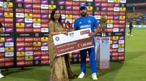 ಆದರೂ ನಾಯಕ ರೋಹಿತ್ ಶರ್ಮಾ 11 ಬೌಂಡರಿ ಹಾಗೂ 8 ಸಿಕ್ಸರ್ ನೆರವಿನಿಂದ (121) ರನ್ ಹಾಗೂ ರಿಂಕು ಸಿಂಗ್ 2 ಬೌಂಡರಿ ಹಾಗೂ 6 ಸಿಕ್ಸರ್ ನೆರವಿನಿಂದ 69 ರನ್ ಗಳಿಸಿ ದಾಖಲೆಯ 190 ರನ್ ಜೊತೆಯಾಟ ನಡೆಸಿ 212 ರನ್ ಗಳ ಬೃಹತ್ ಮೊತ್ತ ಕಲೆಹಾಕಿದರು.