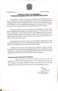 ತೆಲಂಗಾಣದ ಮನುಗೂರಿನಲ್ಲಿ ಲಂಚ ಪಡೆಯುತ್ತಿದ್ದಾಗ ಪೊಲೀಸ್ ಇನ್ಸ್ಪೆಕ್ಟರ್ ಮತ್ತು ಟಿವಿ ವರದಿಗಾರ ಎಸಿಬಿಗೆ ಸಿಕ್ಕಿಬಿದ್ದಿದ್ದಾರೆ.