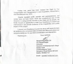 ಲಕ್ಕೇನಹಳ್ಳಿಯಲ್ಲಿ ಯಾವುದೇ ಕಾರಣಕ್ಕೂ ಜಲಾಶಯ ನಿರ್ಮಾಣ ಮಾಡಬಾರದೆಂದು ಈಗಾಗಲೇ ರಾಷ್ಟ್ರಪತಿ ದ್ರೌಪದಿ ಮುರ್ಮು, ಕರ್ನಾಟಕ ರಾಜ್ಯಪಾಲ ಥಾವರ್ ಚಂದ್ ಗೆಹ್ಲೋಟ್, ಸಿಎಂ ಸಿದ್ದರಾಮಯ್ಯ, ಉಪಮುಖ್ಯಮಂತ್ರಿ ಡಿ.ಕೆ ಶಿವಕುಮಾರ್ ಸೇರಿದಂತೆ ಇತರರಿಗೆ ಲಿಖಿತ ರೂಪದಲ್ಲಿ ಪತ್ರ ಬರೆದು ಗಮನ ಸೆಳೆಯಲಾಗಿದೆ.