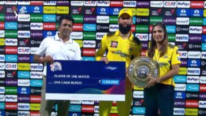 ಚೆನ್ನೈ ಸೂಪರ್ ಕಿಂಗ್ಸ್ ಪರವಾಗಿ ಆಲ್ ರೌಂಡರ್ ಮೋಯಿನ್ ಆಲಿಗೆ 4 ವಿಕೆಟ್ ಹಾಗೂ ಇಂಪ್ಯಾಕ್ಟ್ ಪ್ಲೇಯರ್ ತುಷಾರ್ ದೇಶಪಾಂಡೆ 2 ವಿಕೆಟ್ ಕಬಳಿಸಿದರು, ಐಪಿಎಲ್ ನಲ್ಲಿ 5000 ರನ್ ಗಳಿಸಿ ಮಹೇಂದ್ರ ಸಿಂಗ್ ದೋನಿ ವಿಶೇಷ ದಾಖಲೆ ಸೃಷ್ಟಿಸಿದರು. ಆಲ್ ರೌಂಡರ್ ಪ್ರದರ್ಶನ ನೀಡಿದ ಮೊಯಿನ್ ಆಲಿ ಪಂದ್ಯ ಶ್ರೇಷ್ಠ ಪ್ರಶಸ್ತಿ ಪಡೆದರು.