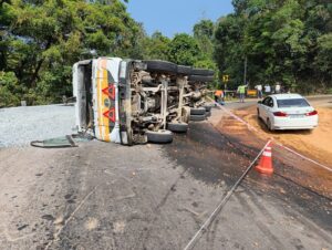 ಲಾರಿ ಪಲ್ಟಿ, ರಸ್ತೆಗೆ ಚೆಲ್ಲಿದ ಡೀಸೆಲ್: 112 ಸಿಬ್ಬಂದಿ ಸಮಯಪ್ರಜ್ಞೆಗೆ ಶ್ಲಾಘನೆ