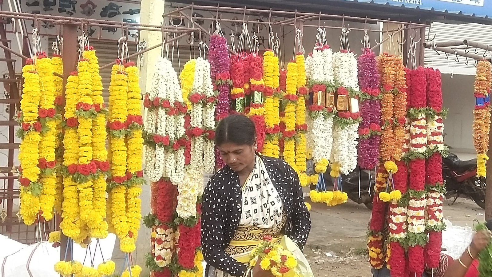 ನಗರದ ಮಾರ್ಕೆಟ್ ನಲ್ಲಿ ಹಣ್ಣುಗಳ ನೂರಾರು ಅಂಗಡಿಗಳು ಹಬ್ಬಕ್ಕೆಂದೇ ತೆರೆದಿವೆ. ದೊಡ್ಡ ತೆಂಗಿನ ಕಾಯಿ ಒಂದಕ್ಕೆ 100 ರೂ ಆಗಿದೆ. ಹೂವು, ಹಣ್ಣಿನ ಬೆಲೆಗಳು ಹಿಂದೆಂದೂ ಕಾಣದಷ್ಟು ಗಗನಕ್ಕೇರಿವೆ. ಕಾಕಡ, ಮಲ್ಲಿಗೆ , ಮಳ್ಳೆ ಹೂವಿನ ಬೆಲೆ 1000 ರೂ, ಕನಕಾಂಬರ ಕೆ.ಜಿಗೆ 2000 ರೂ ಇದ್ದು, 50 ಗ್ರಾಂಗೆ 120ರೂನಂತೆ ಮಾರಾಟವಾಗುತ್ತಿತ್ತು. ಶಾಮಂತಿಗೆ 250ರೂ, ಬಟನ್ಸ್, ಗುಲಾಬಿ ಮೊದಲಾದ ಹೂವಿನ ಬೆಲೆಗಳು 200 ರವರೆಗೂ ಇವೆ. ಇನ್ನು ತಾವರೆ ಹೂ ಜೊತೆಗೆ 80 ರೂ, ಡೇರಾ ಒಂದು ಹೂವಿಗೆ 10 ರೂ ಇದರೊಂದಿಗೆ ಸೇಬಿನ ಬೆಲೆ 250ರೂ, ದ್ರಾಕ್ಷಿ 200ರೂ ದಾಟಿದ್ದು, ಮಿಕ್ಕ ಹಣ್ಣುಗಳ ಬೆಲೆಗಳೂ ಕೆಜಿಗೆ 20 ರಿಂದ 30 ಹೆಚ್ಚಾಗಿವೆ. ಅಲಂಕಾರಿಕ ಹೂಗಳು ಒಂದು ಕುಚ್ಚಿಗೆ 200 ರೂಗಳಂತೆ ಮಾರಾಟವಾಗುತ್ತಿತ್ತು.