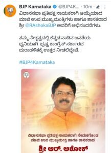 ಕರ್ನಾಟಕ ವಿಧಾನಸಭೆಯ ವಿಪಕ್ಷದ ನಾಯಕನಾಗಿ ಆರ್.ಅಶೋಕ್ ಅವರನ್ನು ಬಿಜೆಪಿ ಹೈಕಮಾಂಡ್ ಆಯ್ಕೆ ಮಾಡಿದೆ.
