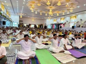 ಇಂದು 9ನೇ ಅಂತರಾಷ್ಟ್ರೀಯ ಯೋಗ ದಿನಾಚರಣೆಯ ಅಂಗವಾಗಿ ವಿಶ್ವ ಯೋಗ ದಿನಾಚರಣಾ ಟ್ರಸ್ಟ್ ನೇತೃತ್ವದಲ್ಲಿ ವಿವಿಧ ಇಲಾಖೆಗಳ ಹಾಗೂ ಯೋಗ ಕೇಂದ್ರಗಳ ಸಹಯೋಗದಲ್ಲಿ ನಗರದ KMH ಕನ್ವೆನ್ಷನ್ ಹಾಲ್ ನಲ್ಲಿ ವಿಶ್ವ ಯೋಗ ದಿನಾಚರಣೆ ಕಾರ್ಯಕ್ರಮವನ್ನು ಆಯೋಜನೆ ಮಾಡಲಾಗಿತ್ತು.