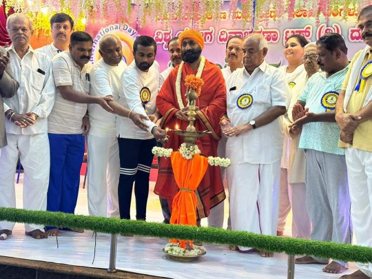 ಇಂದು 9ನೇ ಅಂತರಾಷ್ಟ್ರೀಯ ಯೋಗ ದಿನಾಚರಣೆಯ ಅಂಗವಾಗಿ ವಿಶ್ವ ಯೋಗ ದಿನಾಚರಣಾ ಟ್ರಸ್ಟ್ ನೇತೃತ್ವದಲ್ಲಿ ವಿವಿಧ ಇಲಾಖೆಗಳ ಹಾಗೂ ಯೋಗ ಕೇಂದ್ರಗಳ ಸಹಯೋಗದಲ್ಲಿ ನಗರದ KMH ಕನ್ವೆನ್ಷನ್ ಹಾಲ್ ನಲ್ಲಿ ವಿಶ್ವ ಯೋಗ ದಿನಾಚರಣೆ ಕಾರ್ಯಕ್ರಮವನ್ನು ಆಯೋಜನೆ ಮಾಡಲಾಗಿತ್ತು.