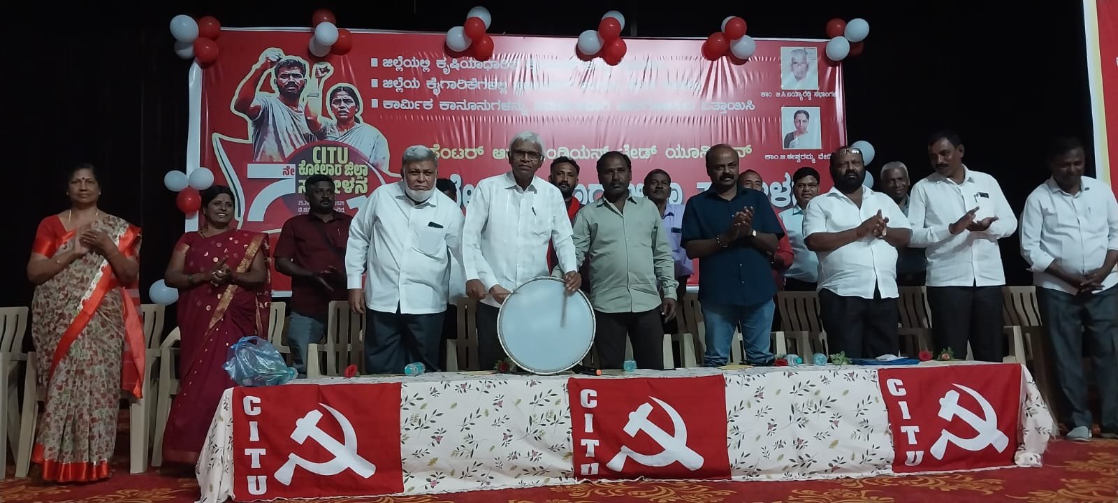 ನಗರದ ಟಿ.ಚೆನ್ನಯ್ಯ ರಂಗಮಂದಿರದಲ್ಲಿ ಶನಿವಾರ ಸೆಂಟರ್ ಆಫ್ ಇಂಡಿಯನ್ ಟ್ರೇಡ್ ಯೂನಿಯನ್ (ಸಿಐಟಿಯು) ಸಂಘಟನೆಯ ಏಳನೇ ಜಿಲ್ಲಾ ಸಮ್ಮೇಳನದ ಬಹಿರಂಗ ಸಭೆಯನ್ನು ತಮಟೆ ಬಾರಿಸುವ ಮೂಲಕ ಉದ್ಘಾಟಿಸಿ ಮಾತನಾಡಿದ ಅವರು ಸರ್ಕಾರಗಳು ಮಾಲೀಕನಿಗೆ ಅನುಕೂಲವಾಗುವಂತೆ ಕಾನೂನು ರೂಪಿಸಿ ಕಾರ್ಮಿಕರನ್ನು ಬೀದಿಗೆ ತಳ್ಳಿದ್ದಾರೆ ರಾಜಕೀಯ ವ್ಯವಸ್ಥೆ ಯಾವತ್ತೂ ಕಾರ್ಮಿಕರ ಪರ ನಿಲ್ಲುವುದಿಲ್ಲ ಶೋಷಣೆ ಇಲ್ಲದ ಸಮಾಜ ನಿರ್ಮಾಣಕ್ಕೆ ನಾವು ಎಲ್ಲರೂ ಒಂದಾಗುವ ಮೂಲಕ ಸರ್ಕಾರಗಳಿಗೆ ಎಚ್ಚರಿಕೆ ಕೊಡಬೇಕಾಗಿದೆ ಎಂದರು.