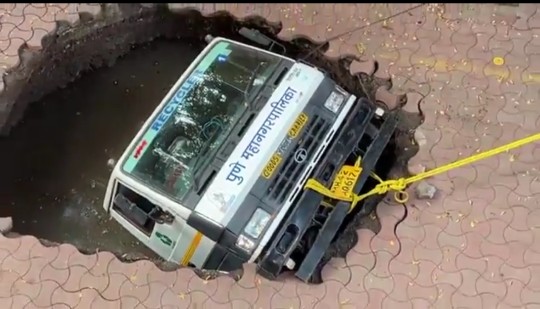 ಜನನಿಬಿಡ ಬುಧ್ವರ್ ಪೇಠ ಪ್ರದೇಶದಲ್ಲಿ ಸಂಜೆ 4 ಗಂಟೆಗೆ ಈ ಘಟನೆ ನಡೆದಿದೆ. ಟ್ರಕ್ ಸಿಂಕ್ಹೋಲ್ಗೆ ಬೀಳುತ್ತಿರುವ ದೃಶ್ಯ ಸಿಸಿಟಿವಿಯಲ್ಲಿ ಸೆರೆಯಾಗಿದೆ. ದೊಡ್ಡ ಟ್ರಕ್ ಸಿನಿಮೀಯ ರೀತಿಯಲ್ಲಿ ಸಿಂಕ್ಹೋಲ್ಗೆ ಮುಳುಗುತ್ತಿರುವುದನ್ನು ವಿಡಿಯೊದಲ್ಲಿ ಕಾಣಬಹುದು.