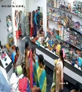 ಅಂಗಡಿಯಲ್ಲಿನ ಸಿಸಿಟಿವಿ ದೃಶ್ಯಾವಳಿಗಳಲ್ಲಿ ಮಹಿಳೆಯರು ತಮ್ಮ ಸೀರೆಯೊಳಗೆ ಬಚ್ಚಿಟ್ಟು ಬಟ್ಟೆಗಳನ್ನು ಕದಿಯುವ ದೃಶ್ಯ ಸೆರೆಯಾಗಿದೆ.