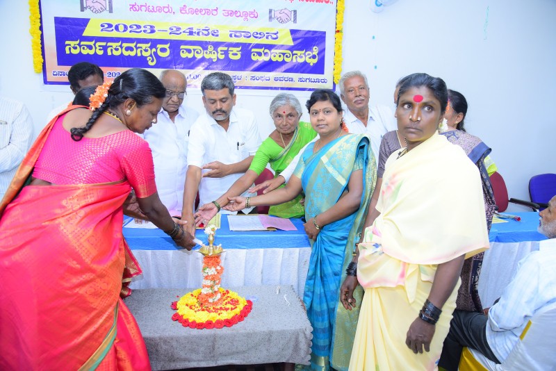 ತಾಲ್ಲೂಕಿನ ಸುಗಟೂರು ಗ್ರಾಮದಲ್ಲಿ ಶನಿವಾರ ನಡೆದ ರೇಷ್ಮೆ ಬೆಳೆಗಾರರ ಹಾಗೂ ರೈತರ ಸೇವಾ ಸಹಕಾರ ಸಂಘದ ಸರ್ವ ಸದಸ್ಯರ ವಾರ್ಷಿಕ ಸಾಮಾನ್ಯ ಸಭೆಯನ್ನು ಉದ್ಘಾಟಿಸಿ ಮಾತನಾಡಿದ ಅವರು ಡಿಸಿಸಿ ಬ್ಯಾಂಕ್ ಸಹಕಾರ ಸಂಘಗಳ ಮೂಲಕ ಆರ್ಥಿಕ ನೆರವು ಕಲ್ಪಿಸುತ್ತಿದೆ. ಆದರೆ, ಜನರು ಸೌಲಭ್ಯ ಪಡೆದುಕೊಂಡು ತಮ್ಮ ಉಳಿತಾಯದ ಹಣವನ್ನು ವಾಣಿಜ್ಯ ಬ್ಯಾಂಕ್ಗಳಲ್ಲಿ ಇಟ್ಟಿದ್ದಾರೆ ಸಹಕಾರಿ ವ್ಯವಸ್ಥೆಯ ಉಳಿವಿಗಾಗಿ ಸಹಕಾರಿ ಬ್ಯಾಂಕ್ ಗಳಲ್ಲಿ ಠೇವಣಿ ಇಡುವಂತೆ ಮನವಿ ಮಾಡಿದರು.