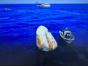 ಹಡಗಿನ ಮೂಲಕ ಗಗನಯಾತ್ರಿಗಳನ್ನು ನೌಕೆಯಿಂದ ಹೊರತರಲಾಗಿದ್ದು, ನಾಲ್ವರೂ ಗಗನಯಾತ್ರಿಗಳು ಆರೋಗ್ಯವಾಗಿದ್ದಾರೆ.